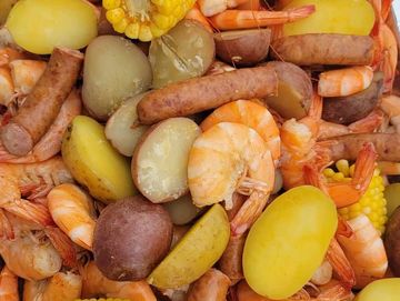 Jumbo Gulf Shrimp LOCO Boil with corn, sausage & potatoes
